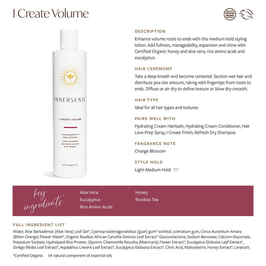 INNERSENSE Organic Beauty - Natural I Create Volume Hair Volumizing Lotion | Non-Toxic, Cruelty-Free, Clean Haircare (Full Size, 10 fl oz | 295 ml)